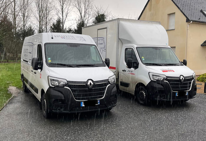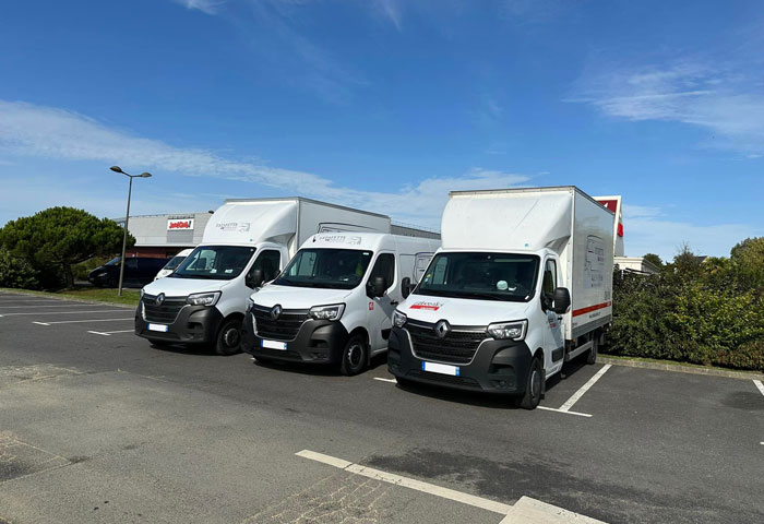 - Des véhicules spécifiques : 13m3 (L: 3m73, l: 1m76, h: 1m89, charge utile: 1300 kg, diable et rampe d'accès) et 20m3 hayon (L: 4m20, l: 2m08, h: 2m30, charge utile: 800 kg, diable et transpalette).